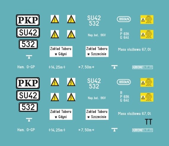 Kalkomania na lokomtywę SU42-532 w malowaniu żółto – niebieskim