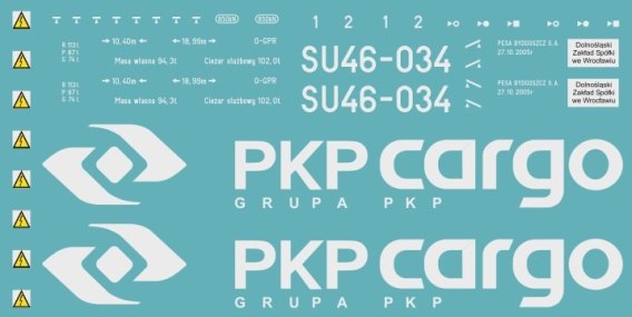 Kalkomania lokomotywy SU46-034 w malowaniu PKP Cargo.