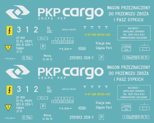 Kalkomania na wagon Ugpps w malowaniu PKP Cargo w epoce V.