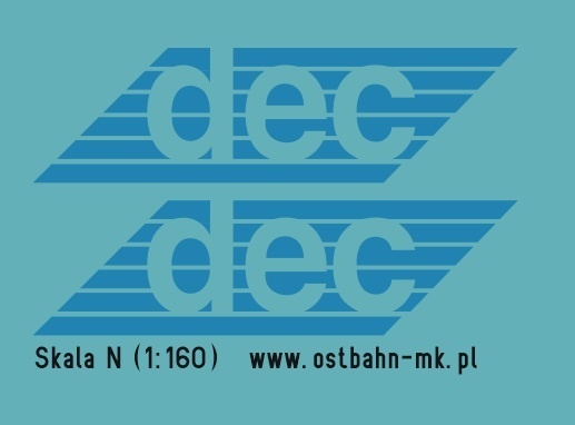 Kalkomania z logo DEC. Wymiary jednego logo 13,5 x 3,8 mm