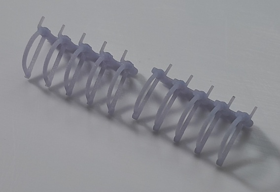 Wykonany w technologii druku 3D zestaw dziesięciu przewodów hamulcowych. 5 "prawych i 5 "lewych"