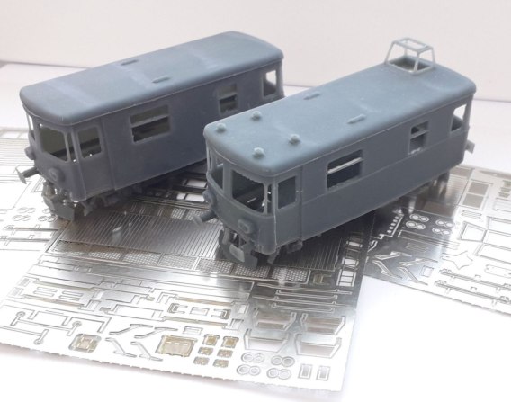 Zestaw wydruków 3D z żywicy światłoczułej oraz blach fototrawionych do budowy modelu SR71. Wagonu do utrzymania sieci trakcyjnej.