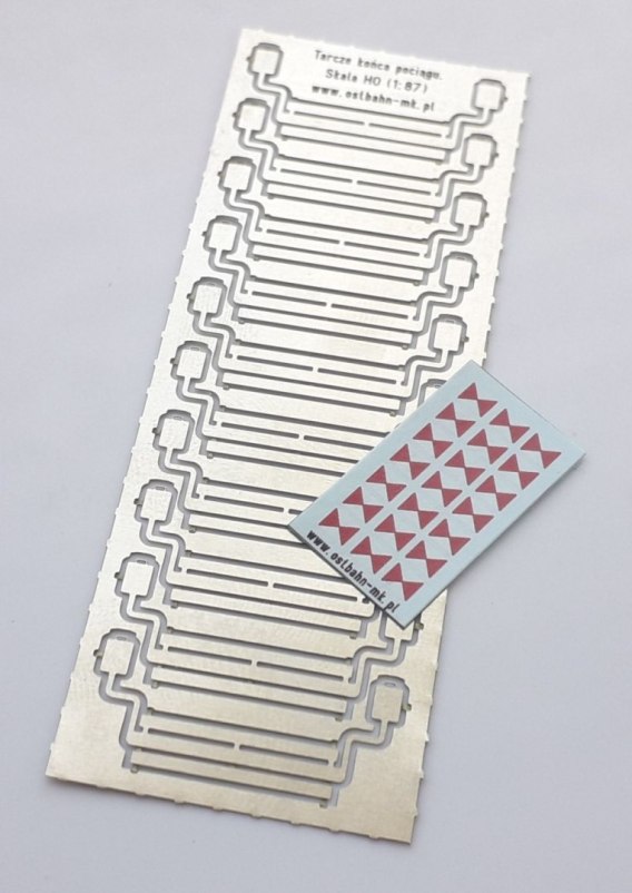 Tarcze końca pociągu z kalkomanią do zawieszenia na buforach Tarcze końca pociągu z kalkomanią do zawieszenia na buforach