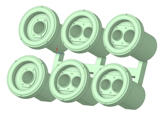 Wykonany w technologii druku 3D zestaw 6 wkładów do reflektorów EU07. Układ świateł "zez". Światłowody w zestawie.
